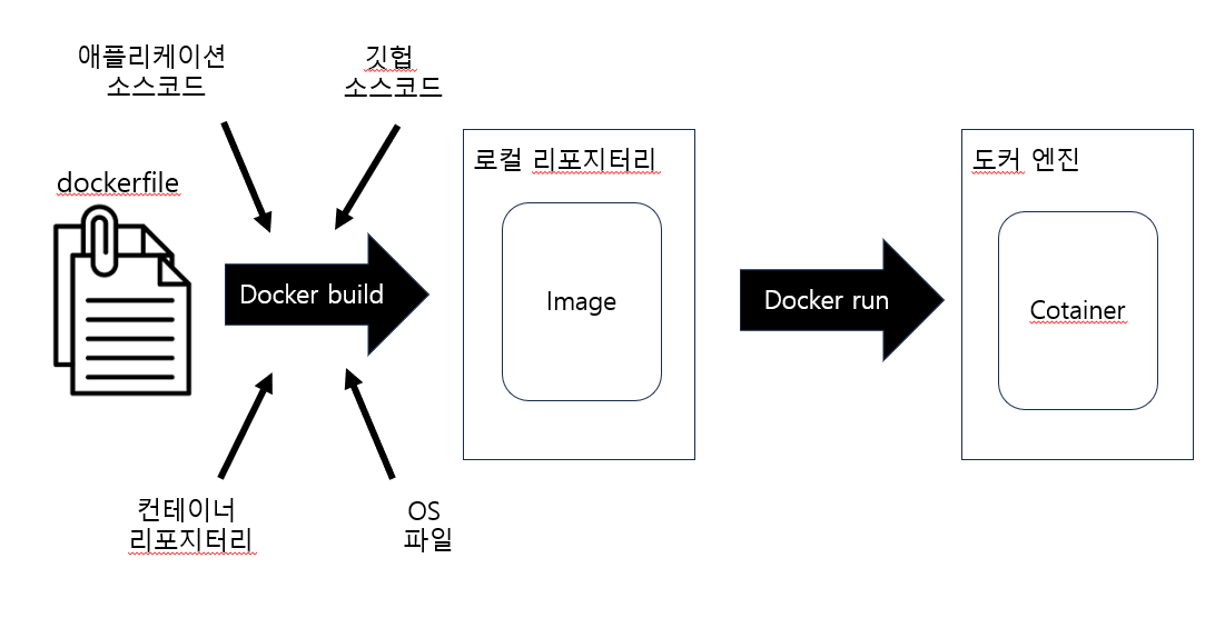 - 깃헙 혹은 로컬에 있는 소스 코드를 이미지에 복사한다.